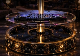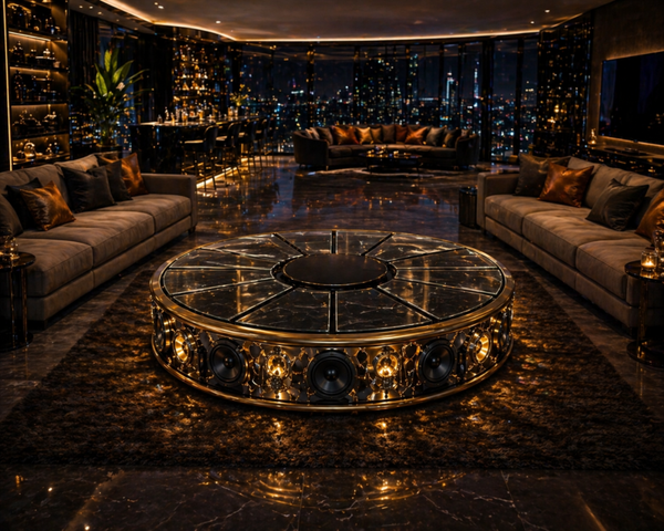 La table design AMIRA PULSAR DJ est une création unique alliant luxe, technologie et expérience immersive. Véritable pièce maîtresse de mobilier haut de gamme, cette table basse transformable se métamorphose en une station DJ professionnelle avec éclairage et son 360° intégré.